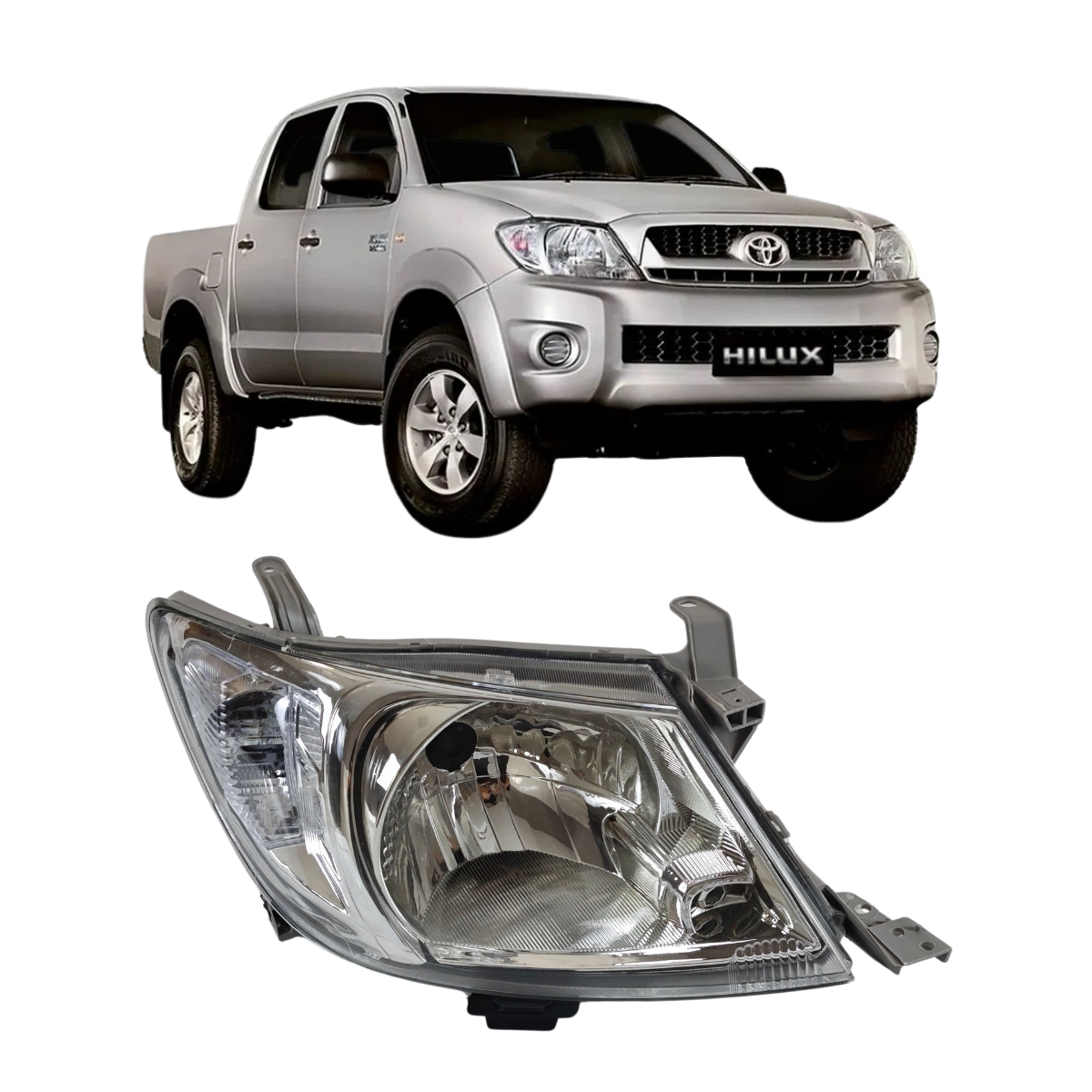 O Farol Dianteiro Halógeno VO6 foi desenvolvido para oferecer excelente projeção de luz e alta durabilidade para a Toyota Hilux SRV 2009 a 2011.