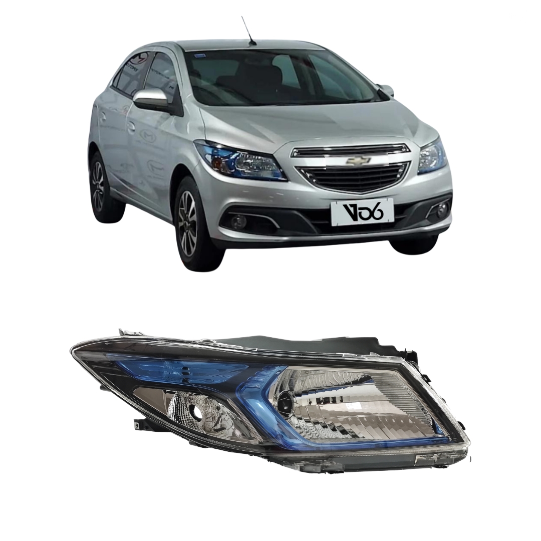 1 × Farol Dianteiro Halógeno VO6 Chevrolet Onix / Prisma — Moldura Azul — Lado Direito