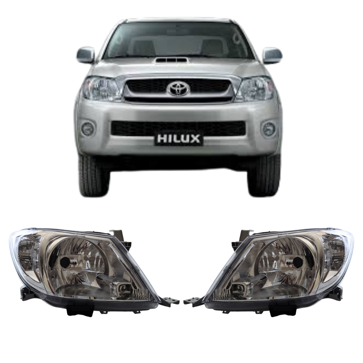 01 × Par de Faróis Dianteiros Halógenos VO6 Toyota Hilux 2009 a 2011 — Máscara Cromada